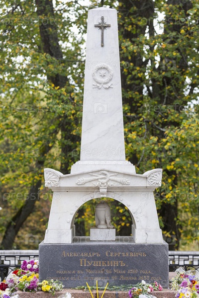 Россия.Пушкинские горы.Могила Пушкина.Обелиск на могиле Александра Пушкина.Пушкинские горы.Гробница Пушкина.Обелиск на могиле Александра Пушкина