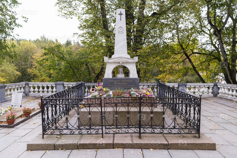 Россия.Пушкинские горы.Могила Пушкина.Обелиск на могиле Александра Пушкина.Пушкинские горы.Гробница Пушкина.Обелиск на могиле Александра Пушкина