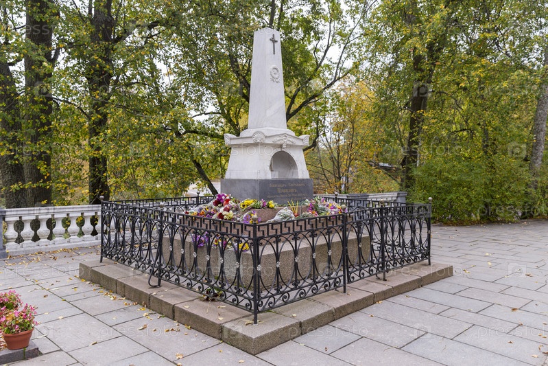 Россия.Пушкинские горы.Могила Пушкина.Обелиск на могиле Александра Пушкина.Пушкинские горы.Гробница Пушкина.Обелиск на могиле Александра Пушкина