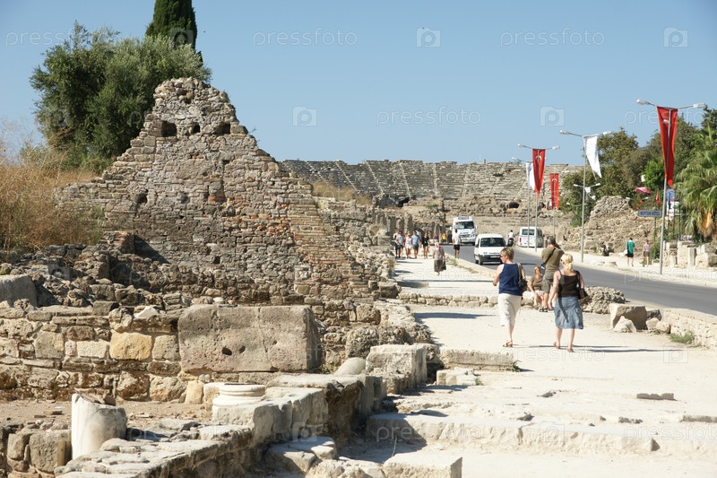 Турция. Сиде. Руины старого города. Достопримечательности. Турция. Боковая сторона. Руины старого города. Атракции