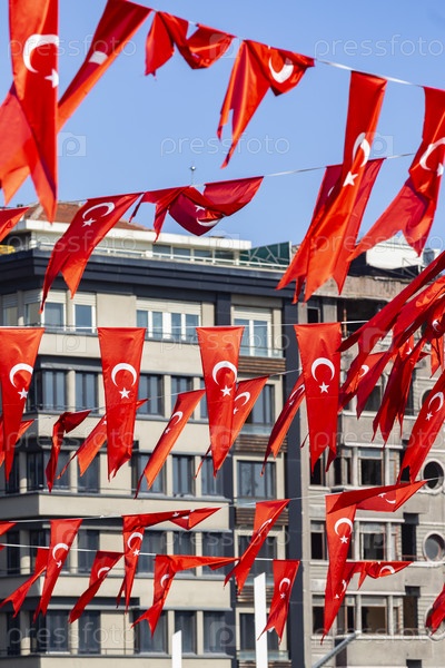 Турция. Стамбул. Украшение улиц Стамбула. Турецкие флаги. Турция. Стамбул. Оформление улиц Стамбула. Турецкие флаги