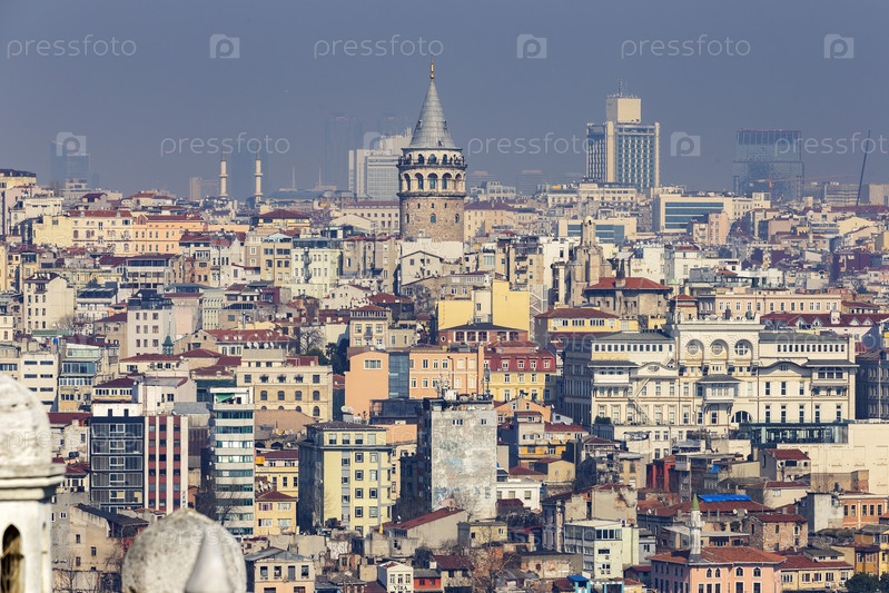 Турция. Стамбул. Вид на район Бейоглу. Галатская башня. Турция. Стамбул. Вид на район Бейоглу. Башня Галата