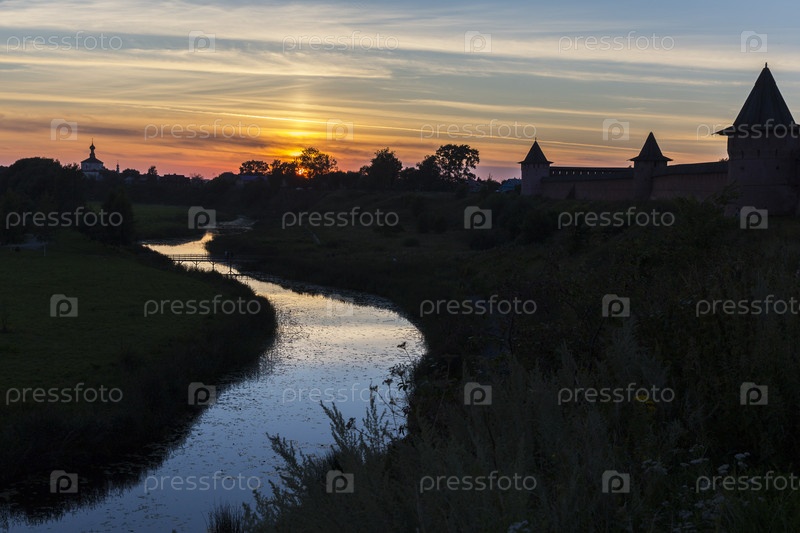 Россия. Суздаль. Спасо-Евфимиевский монастырь. Виды на Суздаль. Река Каменка. Закат. Типы Суздаля. Река Каменка. Затмение солнца