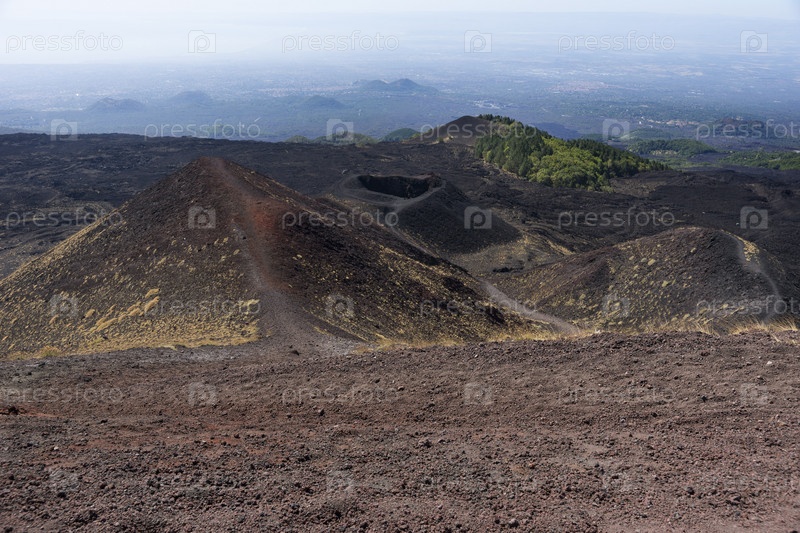 Италия. Сицилия. Склон вулкана Этна. Природные пейзажи Сицилии. Италия. Сицилия. Склоны горы Этна. Естественные ландшафты Сицилии