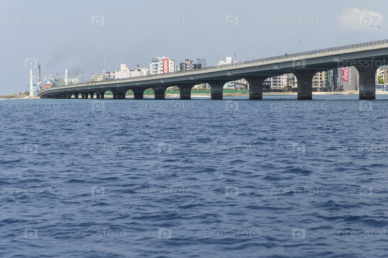 Мальдивская Республика. Мале. Виды Мальдив. Вид на город Мале со стороны моря. Синамале - мост между островами Мале, Хулхумале и островом-аэропортом Хулуле
