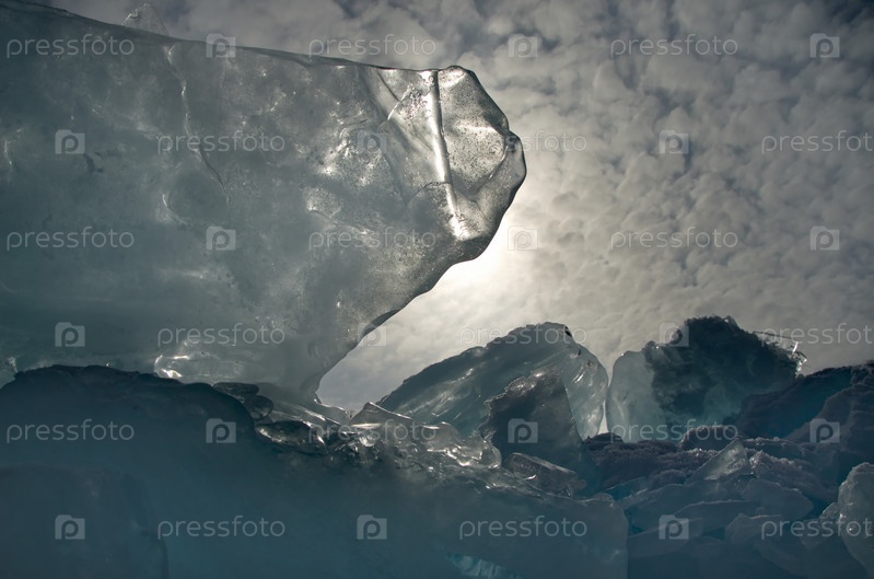Россия. Восточная Сибирь. Случайные груды льдин, сверкающих на солнце на замерзшем Байкале