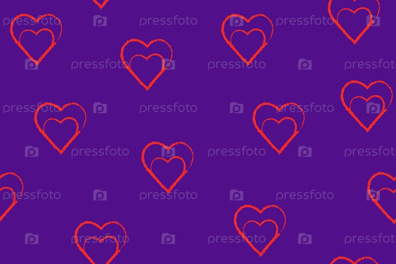 Бесшовный узор с красными пересекающимися сердечками на фиолетовом фоне для клетки, ткани, обоев, текстиля, одежды, скатертей и других вещей