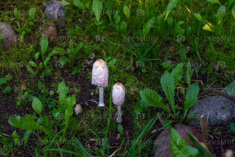 Гриб навозник белый, род навозов семейства грибчатых. Гриб навозник вырос летом в лесу. Грибы белого навоза, род навоза из семьи шампиньонов
