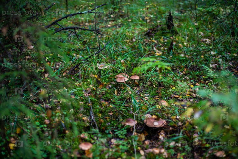 Несъедобные грибы выросли в лесу в теплое время года.Несъедобные грибы росли в лесу во время теплого сезона