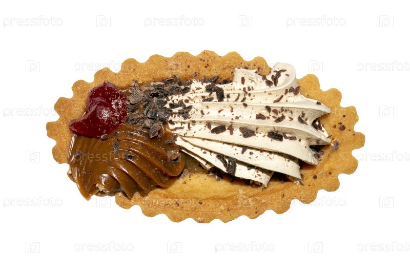 Корзина с кремом на белом фоне.Торт со смесью и шоколадным сливком.Картина со сметаной и шоколадовыми чипсами
