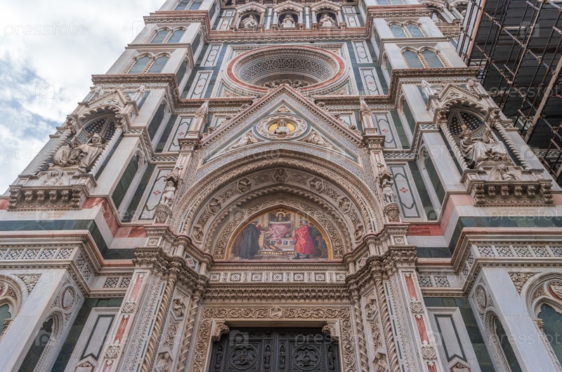 Флоренция, Италия. Вид на фреску на фасаде Санта-Мария-дель-Фьоре