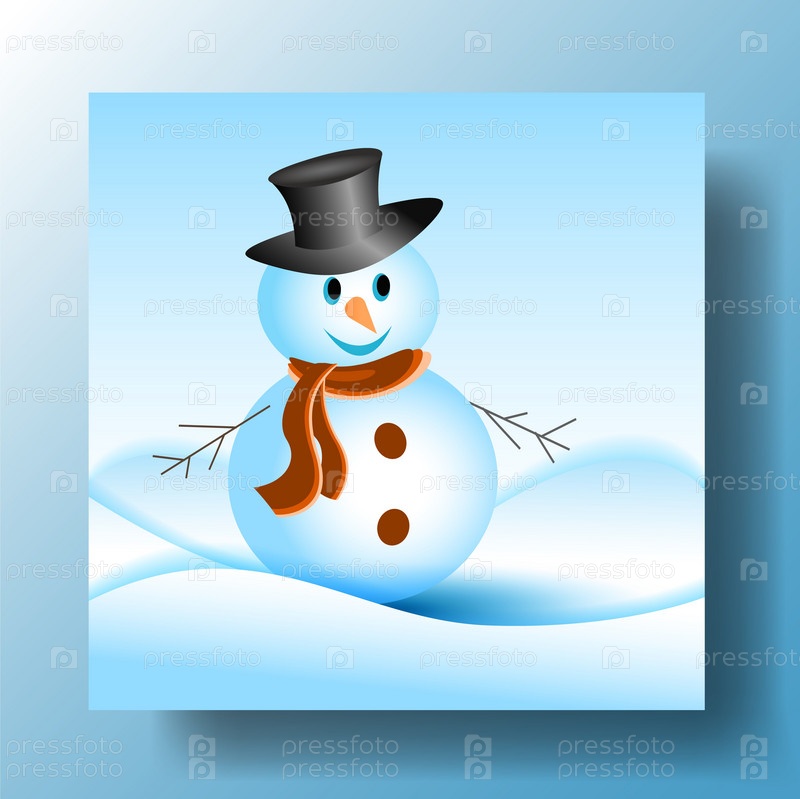 Поздравительная открытка с Рождеством и Новым годом с копировальным пространством и милым снеговиком, стоящим в зимнее Рождество, пейзажный снег падает