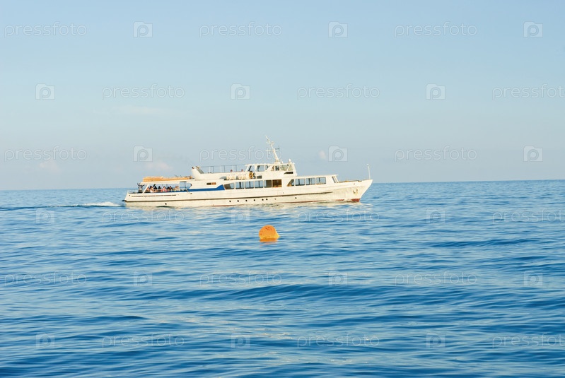 Небольшой корабль в море недалеко от Ялты. Крым. Украина