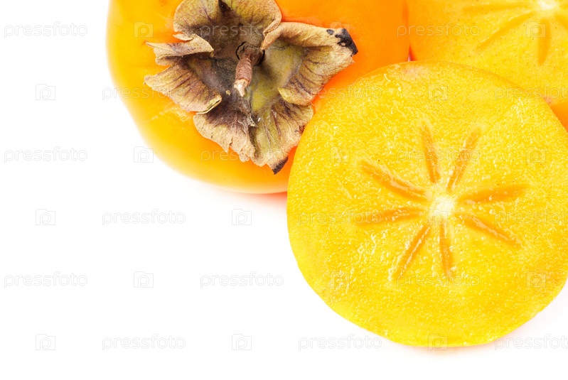 Куски хурмы на белом фоне