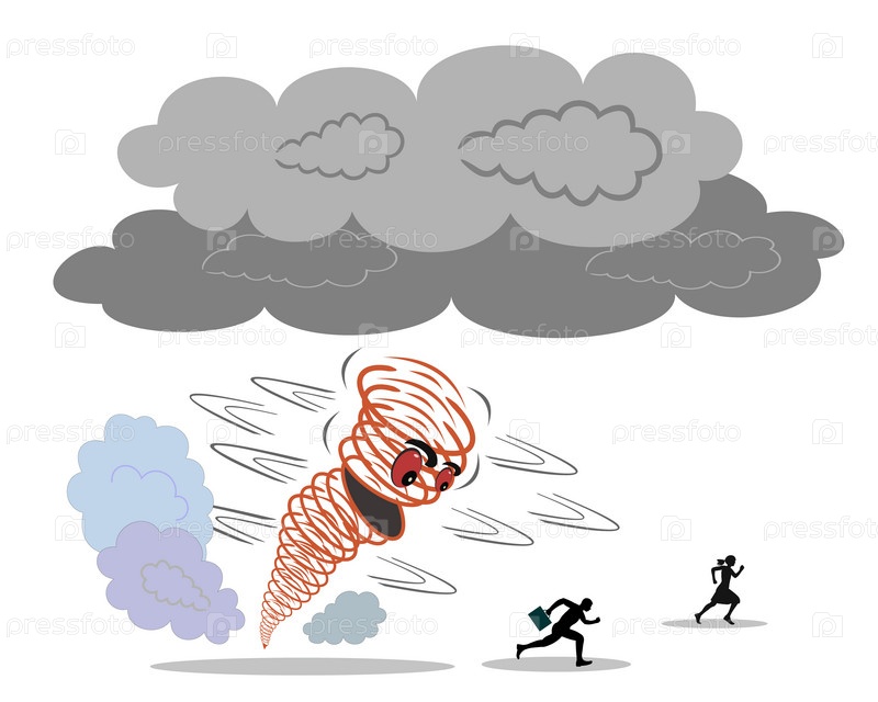 Природная катастрофа. Ураган вредит человеку. Люди бегут от разрушительного торнадо