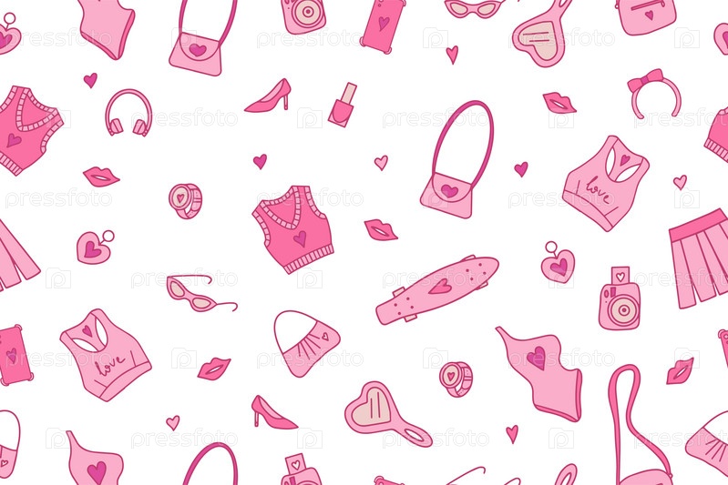 Бесшовные модные розовые узоры в стиле Барбикора. . Векторная иллюстрация