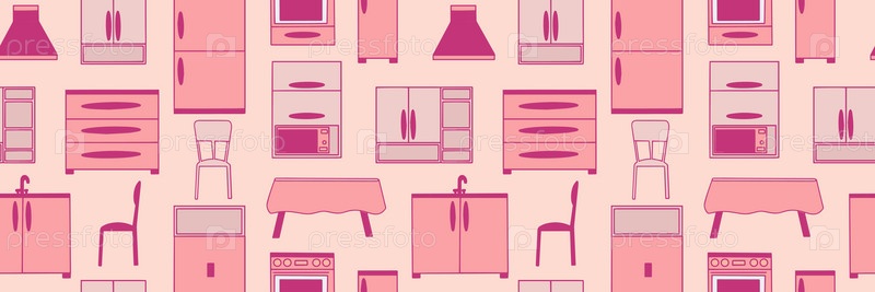 Бесшовный узор из розовых и кухонных элементов. Розовый игрушечный дизайн кухни-кухни. Векторная иллюстрация. Вектор
