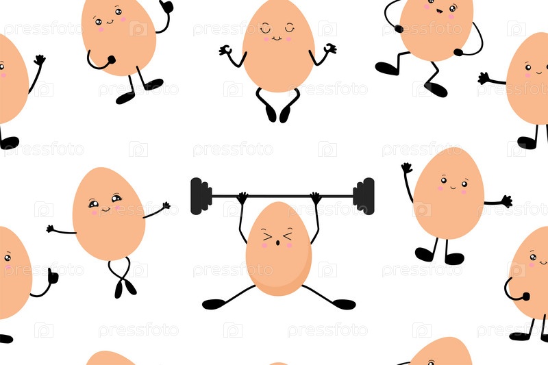 Симпатичный бесшовный рисунок яйца в стиле каваи. Векторная иллюстрация. Концепция иконки еды. Плоский мультяшный стиль. Векторная иллюстрация