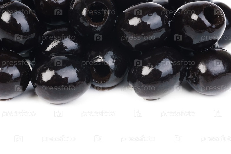 Черные оливки без косточек, изолированные на белом фоне