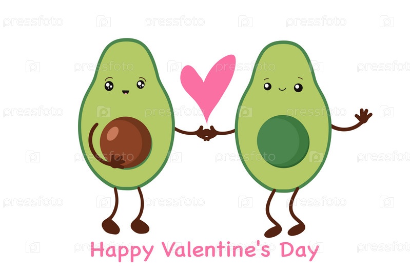 Милые любители авокадо в стиле каваи. Плоды авокадо в плоском дизайне. Вектор