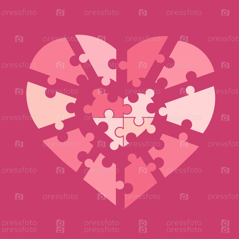 Материал головоломки в форме сердца. Сердце, головоломка. Значок или символ выделен на белом фоне. День святого Валентина, любовь, романтика и отношения. Векторная иллюстрация