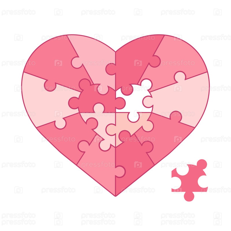 Материал головоломки в форме сердца. Сердце, головоломка. Значок или символ выделен на белом фоне. День святого Валентина, любовь, романтика и отношения. Векторная иллюстрация