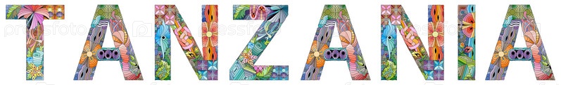 Векторное слово Танзания. Ручная роспись художественного дизайна. Иллюстрация для дизайна футболок, татуировок и других украшений
