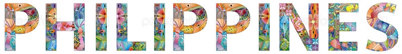 Векторное слово Филиппины. Ручная роспись художественного дизайна. Иллюстрация для дизайна футболок, татуировок и других украшений