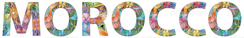Векторное слово Марокко. Ручная роспись художественного дизайна. Иллюстрация для дизайна футболок, татуировок и других украшений