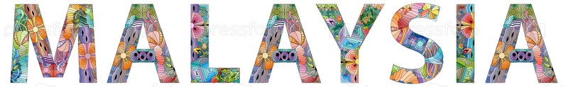Векторное слово Малайзия. Ручная роспись художественного дизайна. Иллюстрация для дизайна футболок, татуировок и других украшений