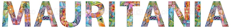Векторное слово Мавритания. Ручная роспись художественного дизайна. Иллюстрация для дизайна футболок, татуировок и других украшений