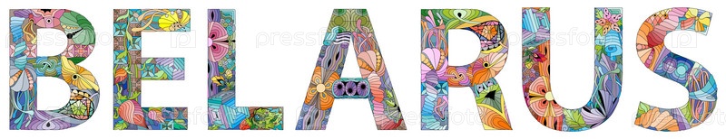 Векторное слово Беларусь. Ручная роспись художественного дизайна. Иллюстрация для дизайна футболок, татуировок и других украшений