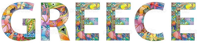Векторное слово Греция. Ручная роспись художественного дизайна. Иллюстрация для дизайна футболок, татуировок и других украшений