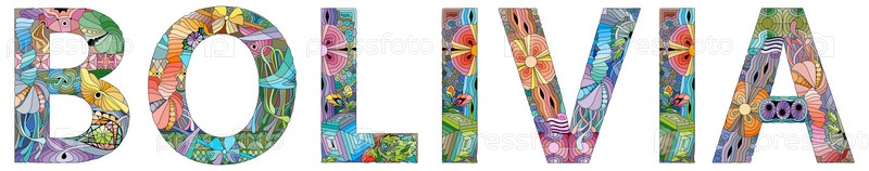 Векторное слово Боливия. Ручная роспись художественного дизайна. Иллюстрация для дизайна футболок, татуировок и других украшений