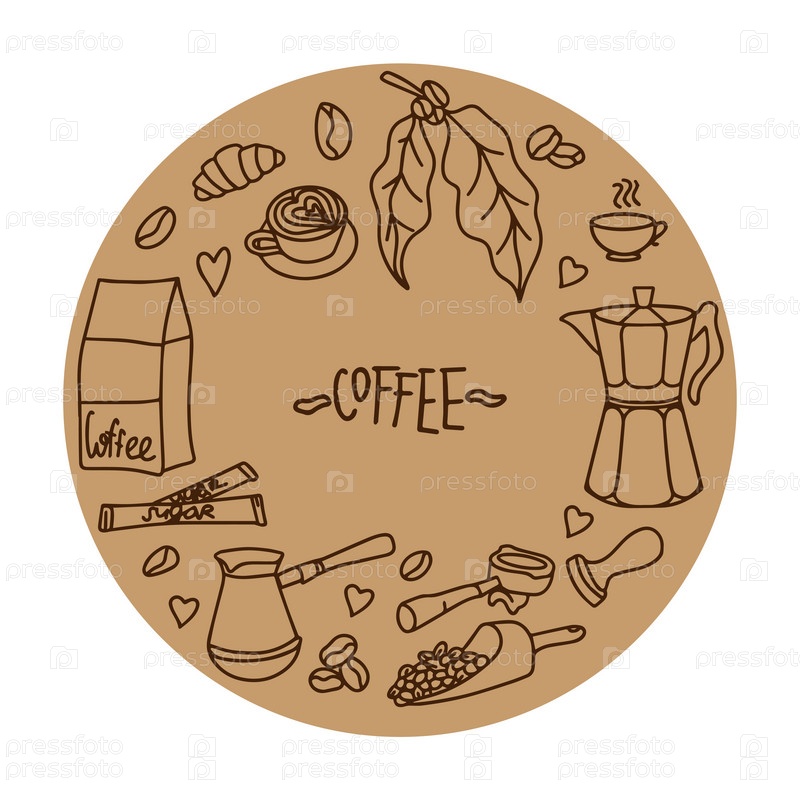 Набор рисованной темы кафе. Каракули для кофе, пекарня для меню кафе, кондитерская. Баннер для меню и рецептов