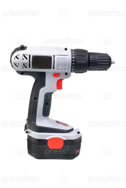 Аккумуляторный шуруповерт, изолированный на белом фоне