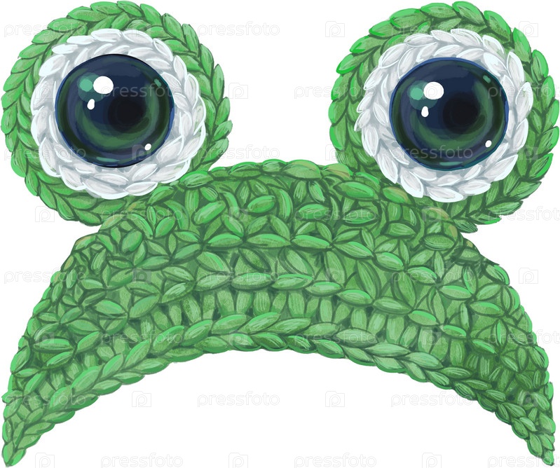 Зеленая шапочка-кошка, связанная спицами с лягушачьими глазками. Акварельная иллюстрация