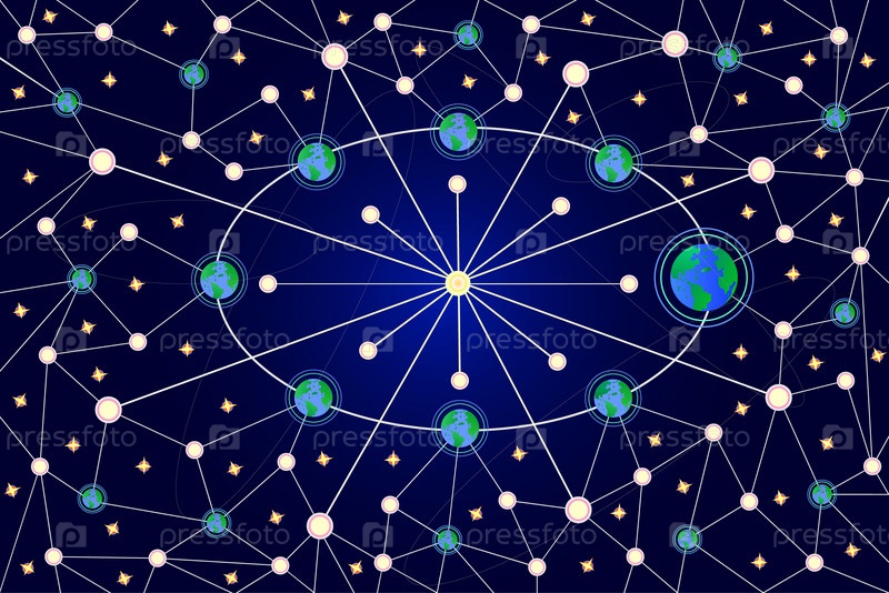 Планетарная траектория Земли на схеме. Звездное небо. Магнитные бури планеты