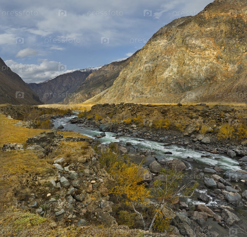 Россия. Юг Западной Сибири, Горный Алтай. Золотая осень в долине реки Чулышман у перевала Кату-Ярык