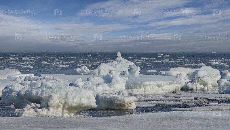 БайкалРоссия. Западное побережье острова Сахалин. Живописные льдины весеннего Тихого океана.