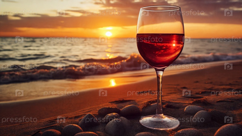 Бокал вина на пляже на закате