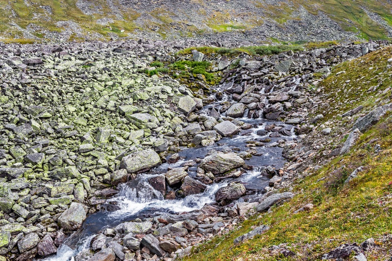 Каскады ручьев, текущие по скалам в горах