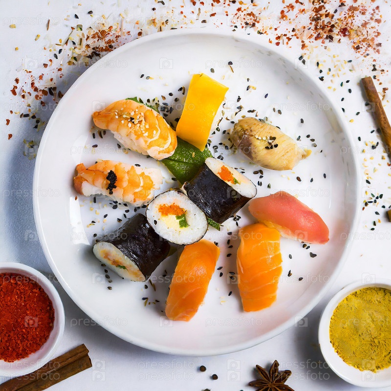 Роллы со специями в тарелкен