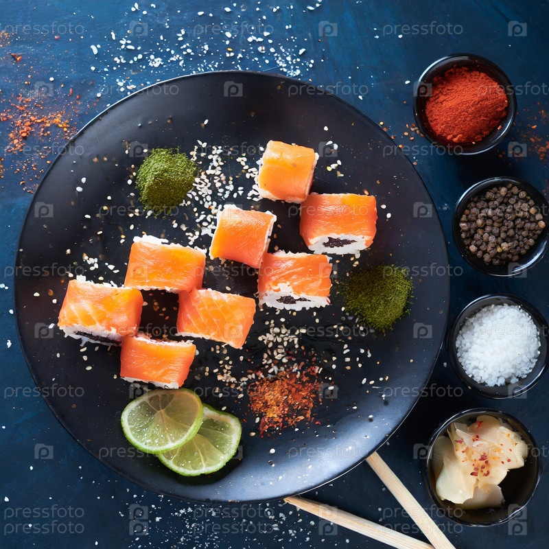 Роллы со специями в тарелкен
