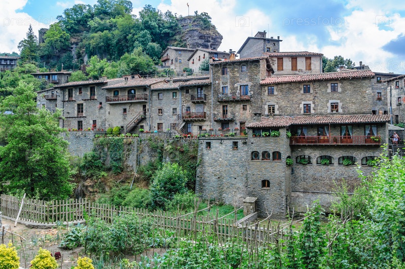 Вид спереди на исторический каталонский город на вулкане Рупит