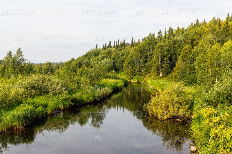 Холодный ручей в северном районе в летний день