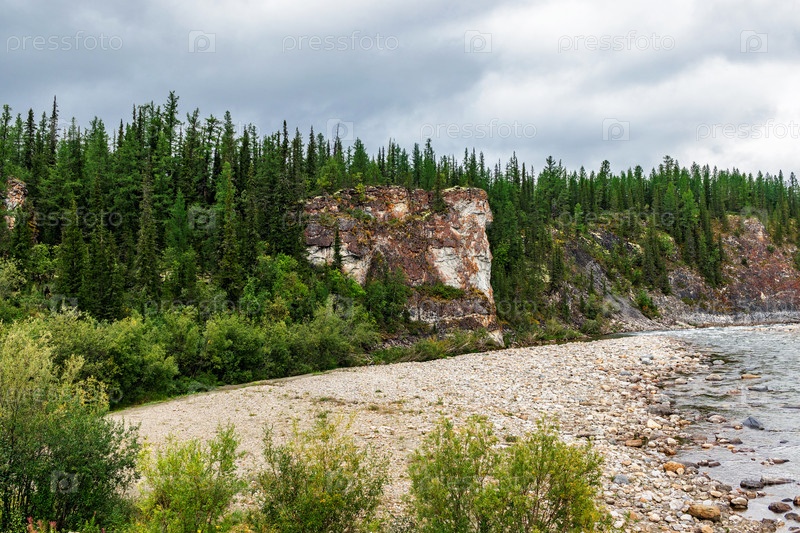 Отвесная скала, поросшая лесом в уральских горах
