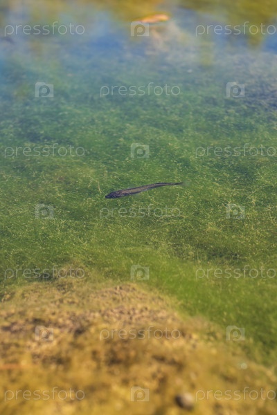 Маленькая рыбка, плавающая в пруду