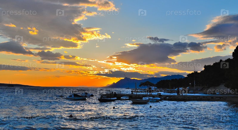 Оранжевый закат на Макарской Ривьере, Хорватия
