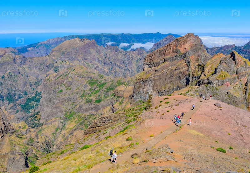Красивая пешеходная тропа от Пику-ду-Ариейро до Пику-Руиву выше облаков. Остров Мадейра, Португалия